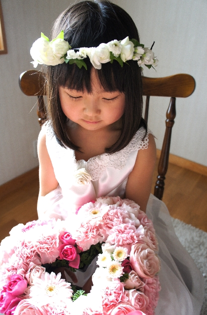 白いベビードレスにあわせて、記念撮影する際や、結婚式に参列する際などにぴったりのヘッドドレスです。