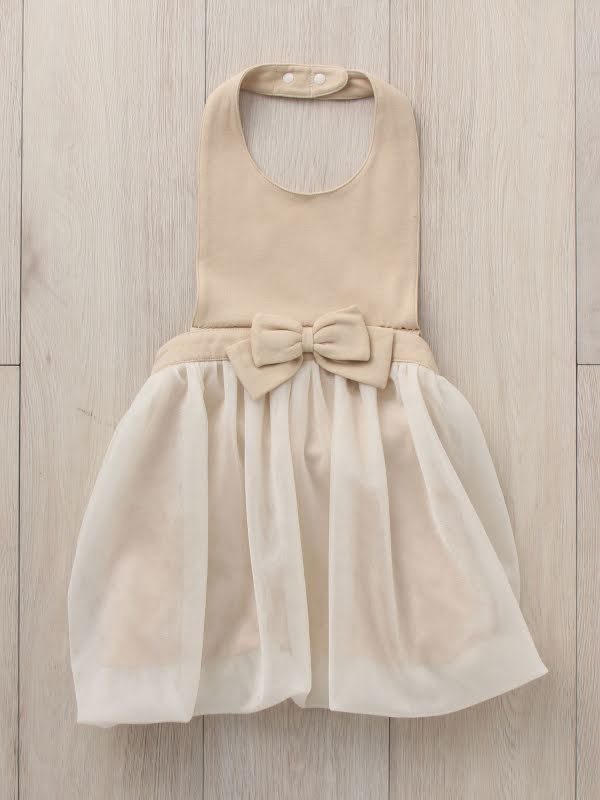 チュール部分のみポリエステル100%、他の部分は綿100%で、肌触りもやわらか。首元に少し余裕があるデザインのため、スタイを嫌がる赤ちゃんでも着け心地が悪くなりません。