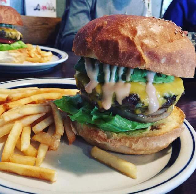 こちらのハンバーガーはボリューミーで、お肉がジューシー!アボガドバーガーが特におすすめです。店内も奥行きがあるので、ベビーカー連れでもゆったりできます。