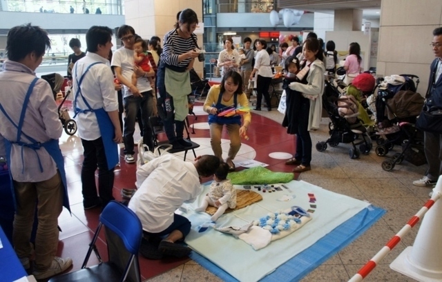 ワークショップでは、おひるねアートや知育玩具で遊べたり、かつおぶし削り、鯉のぼりガーラントづくりや英字新聞兜づくりなどの体験メニューが充実。