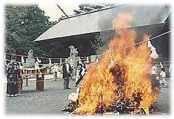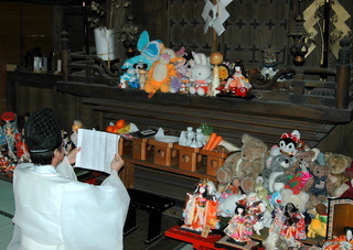 人形供養慰霊祭は3月・9月の最終日曜日13時より行われ、祝詞が読まれ、忌火(神聖な火)によって点火、御焚き上げがなされます。御焚き上げは天候等により後日行われる場合もあります。