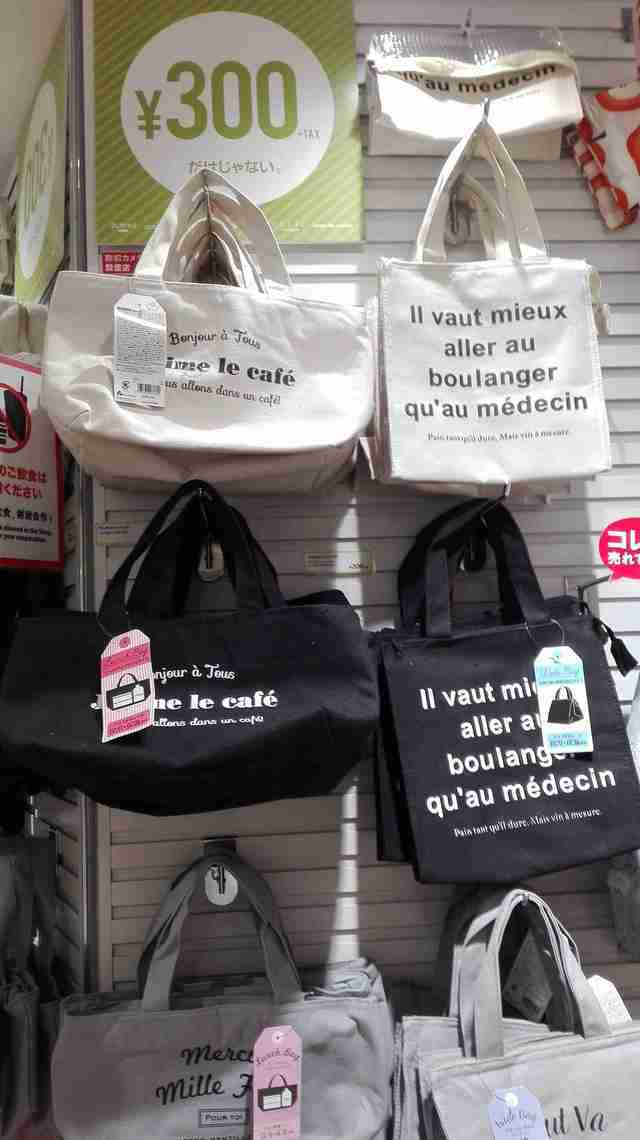 実際にお店に行ってみると、さっそくありました!壁にかかっているのを見ると、普通のトートバッグのようです。