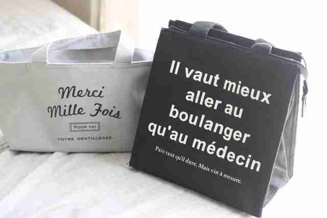 フランス語で「本当にありがとう」といった意味のようです。保冷バッグでグレーはあまりみかけない色ですよね。