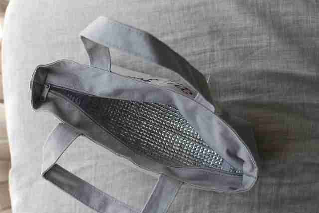 しかし一見トートバッグですが、実は内側が銀色のアルミになっており、保冷ができるようになっています。3COINSの保冷バッグは、”普通のトートバッグのように見せかけて”実は保冷もできるバッグなんですね。