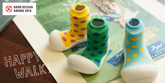 株式会社住吉屋の「Attipas(アティパス)」は、靴下と靴が一体になったようなコロンとしたかわいらしいフォルムで、生後5ヶ月の赤ちゃんからよちよち歩きの赤ちゃんまでが使えるようデザインされたベビーシューズです。