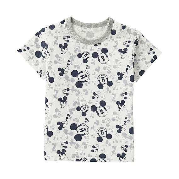 出典:www.uniqlo.comベビーサイズなのに、シックな色合いのディズニーコラボTシャツ。ホワイトは、ミッキーの色々な表情が描かれています。白×グレー×黒なので、モノトーンコーデが簡単にできます。ブラックデニム、ホワイトデニム、黒のストレッチパンツなど、手もちのアイテムを合わせるだけでモードな着こなしになります。