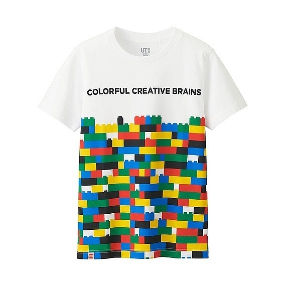 出典:www.uniqlo.comサイズ展開は100センチ~150センチ。白地にカラフルなレゴブロックが輝くTシャツは、150センチが入るなら親子、兄弟で着こなしたくなるTシャツです。