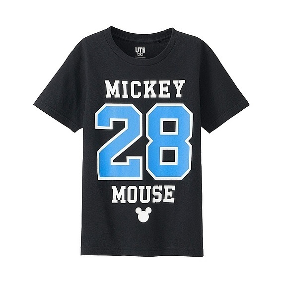 出典:www.uniqlo.comアメリカンなロゴが光るカレッジ風のTシャツは、ディズニーとのコラボアイテムです。「MICKEY MOUSE」と書かれているものの、ミッキーのイラストはなく、シルエットのみ。色もブラックなので、何にでも組み合わせが可能。