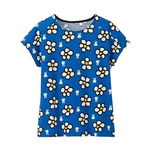 出典:www.uniqlo.com腕が細く見えるデザインのゆるTシャツです。花柄のTシャツと思ってよく見ると、ミッフィーが隠れていますよ!見つけてみましょう。