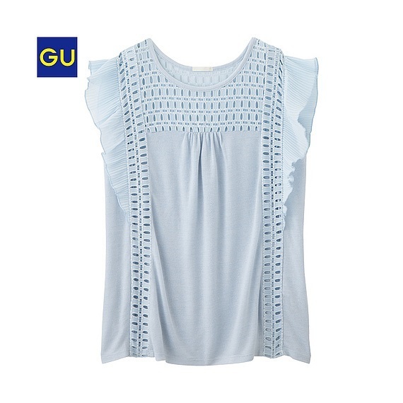 出典:www.uniqlo.com女子力高めのフリルのノースリーブ。カーディガンを着たりしても素敵なトップスです。かわいい甘めのデザイン!これで期間限定990円の価格は安すぎます。期間が過ぎても1490円とリーズナブル!