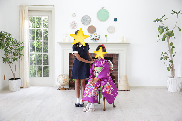 次女の7歳の時には、年賀状にも使いたいし、おじいちゃんおばあちゃんにもたくさん写真をプレゼントしたいと言う思いで、お参り当日のレンタルは諦めて、流行の一軒家スタジオ「Private Photo Studio HOME」で前撮りをしてもらいました。