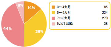 妊娠初期・後期は少数派で、安定期にあたる5ヶ月〜8ヶ月が大多数を占めました。人によって体調等は異なるものですが、やはり安定している時期を選んで旅行に行く方が多いようです。