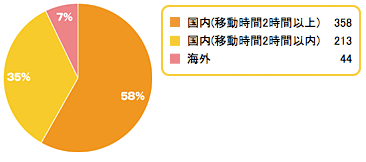 全体の93%が国内旅行。そのうち、58%が移動時間2時間以上。35%が移動時間2時間以内でした。 そして、海外旅行も7%いらっしゃいます。