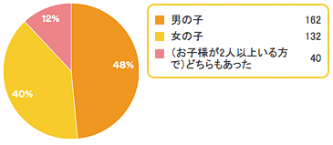 出典:www.combibaby.com夜泣きをしたお子様の性別をお伺いしたところ、「男の子」(48%)が「女の子」(40%)よりも微妙に多い結果となりました。
