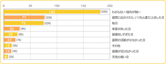 その他多かったのは、「昼間に出かけたり、いつもと違うことをした日」(23%)や「毎日」(23%)でした。