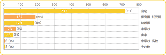 全体の81%が「ご自宅」でした。幼稚園・保育園へ通う以前の3才までのお子様のいらっしゃる方が多いようです。