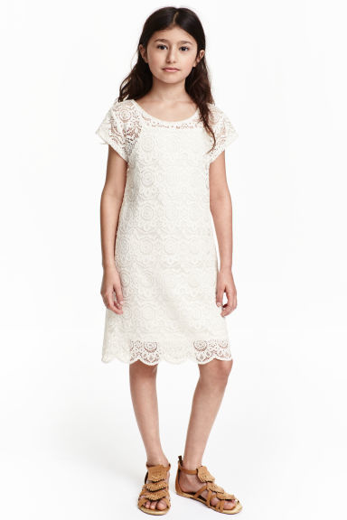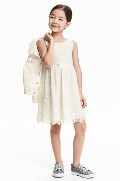 出典:www2.hm.comこちらの白レースワンピースはウェストに切り替えがあり、リボンがついています。スカートがフレアとなっていてとてもかわいいデザインです。
