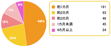 出典:www.combibaby.com出産後、どれくらいの期間実家に滞在したかをお伺いしました。 「1ヶ月」が一番多く、ほぼ半数(48%)、そして、「2ヶ月」(23%)、「3ヶ月」(12%)と続きました。 出産後の1ヶ月健診を目安に自宅へ帰る方が多いのかもしれません。