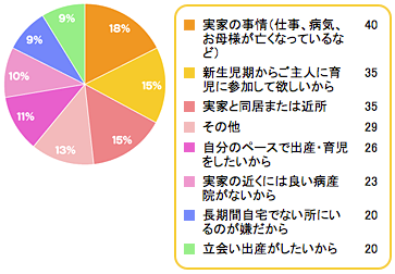 まず1つめは、実家の事情や医療事情により里帰りしないという方。 2つめは、立ち会い出産希望や、新生児期からご主人に育児参加してもらいたいという方。 3つめは、自分のペースで出産・育児をしたい、長期間自宅を離れるのが嫌だという方。