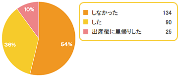 その分「里帰りしなかった」方が増加しています(54%)。 第1子との年の差もありますが、子どもの生活リズムを崩さず過ごしたい、ということでしょうか。