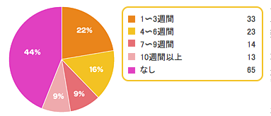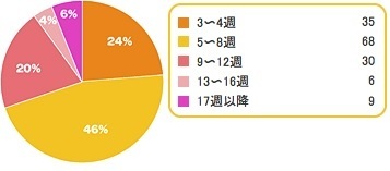 出典:www.combibaby.com管理入院された方が、全体の56%。母体と赤ちゃんの様子を見て、経過観察をしながらということなのでしょう。入院期間は、3週間以下という方が最も多かったですね。