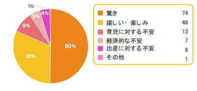 出典:www.combibaby.com「驚き」という方が半数でした。きっと私もビックリすると思います。もし双子家系であって、可能性として考えてはいても、実際に判明したらビックリするでしょうね。