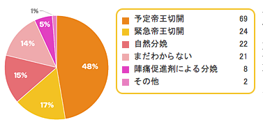 出典:www.combibaby.com予定帝王切開という方が最も多く、48%。上記アンケートとあわせると、臨月に入った37週に予定された方が多かったのかもしれません。