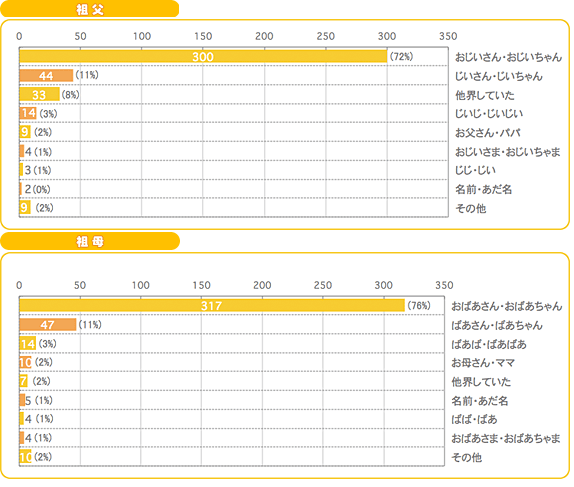 子どもの“祖父母の呼び方”について先輩ママの声をお届けさせていただきました。祖父母の呼び方はご家庭によって様々ですね。