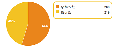 出典:www.combibaby.com「妊娠高血圧症候群」と診断、または注意を受ける前に自覚症状のあった方は45%、なかった方は55%でした。