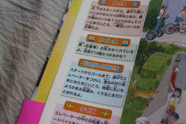 ・迷路とかくし絵を組み合わせるのは楽しいアイデアです。大人も一緒になって楽しめます。