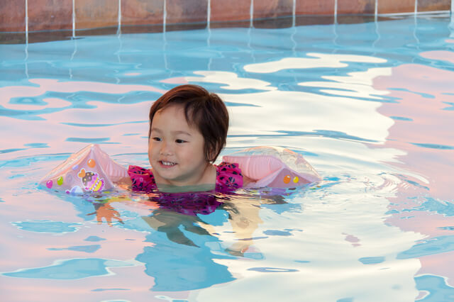 アームリングの特性上、肩から上が水中に沈むのを防ぎますが、顔が水に浸からないわけではありません。使用時には必ず大人が付き添い、目を離さないように気を付けましょう。