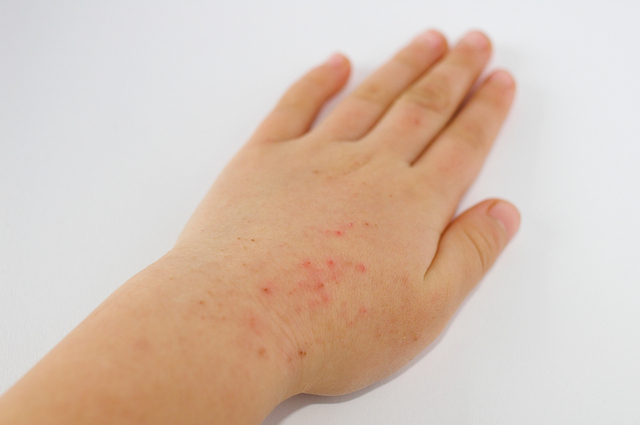 発疹は、首、胸、足首、手首などの部位からできはじめることが多く、やがて全身にひろがっていきます。発疹にはかゆみがあります。
