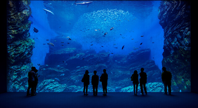 太陽光によって、生き物本来の色を感じ取ることができます。また1Fでは日本の海、2Fでは世界の海をテーマにして、さまざまな海の生き物を見ることができます。