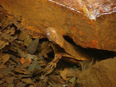 オオサンショウウオを含め、全部で9種約50匹のサンショウウオが展示されています。中にはおなじみのウーパールーパーも。