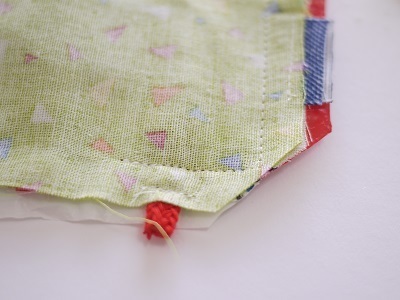 表に返した時に、ごろつかないよう四つ角を斜めに切り落とします。