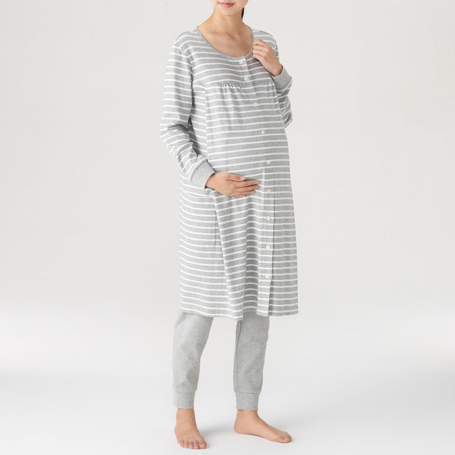 デザインもシンプルで、肌触りが柔らかいスムース素材が、出産後のママを優しく包んでくれますよ。前身頃にスリットが入っていて、授乳もスマートに対応できます。