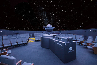 こちらは、地球の上から見える星空を美しく再現した光学式プラネタリウムと、宇宙飛行をしているかのような臨場感あふれるデジタル式プラネタリウムの両方を見ることができます。