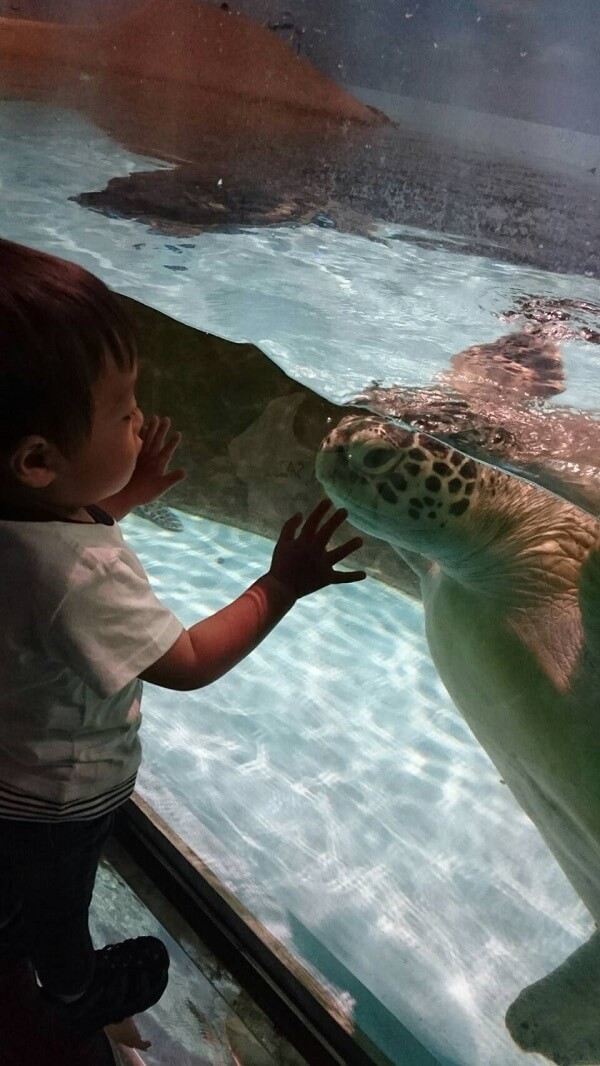 赤ちゃんの時にしか行ったことがなく、魚や生き物が理解できてきて初めて行きました。とても楽しそうで、貝などに触るとかもとても興味津々で自分から触りたい!と積極的で見てて成長を感じました!亀が近くに来たのがとてもうれしかったみたいです。
