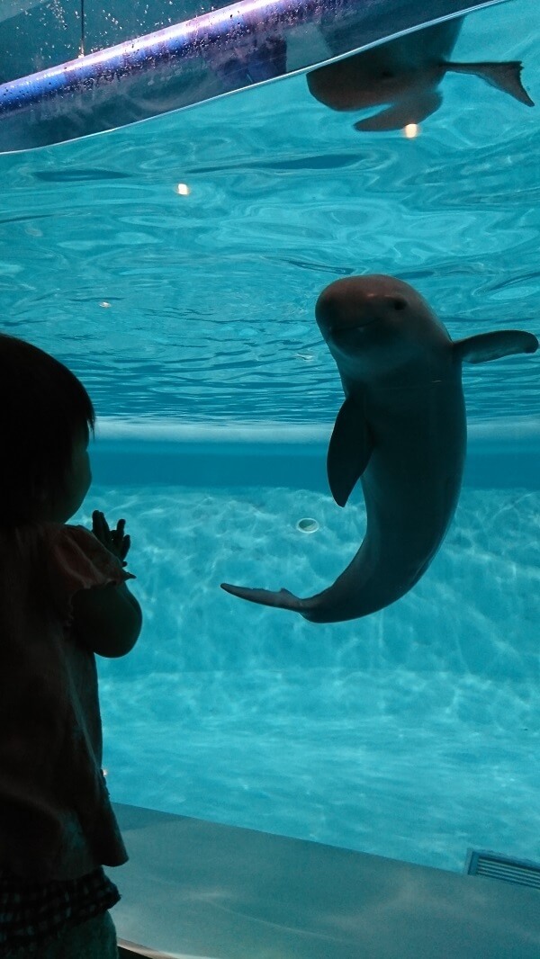日曜日の朝一で行ったので比較的空いていて最初はゆっくり見学できました。特にスナメリが間近に来てくれて笑いかけたり遊んでくれたのが子どもはうれしかったようでした。1歳なのでイルカショーは近くで見ないとあまりよくわかっていないようでした。お昼近くなると人が多過ぎてまともに見れる状況にはなりませんでしたが、行ってよかったと思いました。