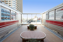乗りもの好きの子どもにおすすめなのが、4階の展望デッキです。東急武蔵小杉駅に乗り入れする10種類以上の電車を眺めることができます。また、デッキには東急9000系の車両側部が取り付けられていますよ。