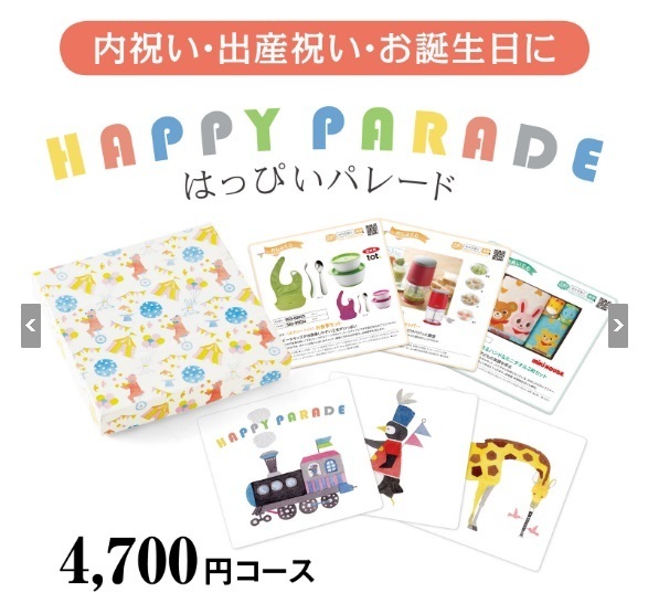 選べるギフトは、知育玩具や離乳食用の食器など、出産祝いにピッタリの内容です。