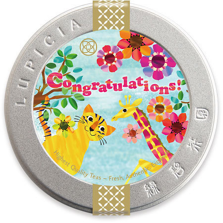 50g缶入りのお茶には、無料で名入れメッセージラベルを付けることができます。目的に合わせたかわいらしいイラストのラベルを選び、1缶からインターネットで簡単に作成して注文できますよ。