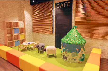 ベビーカーを畳まずに入れるゆったりとした店内。おむつ交換台も用意されており、小さい子どもと一緒に来ることができます。さらに、キッズスペースもあるので、遊びたい盛りの元気な子ども連れでも安心です!