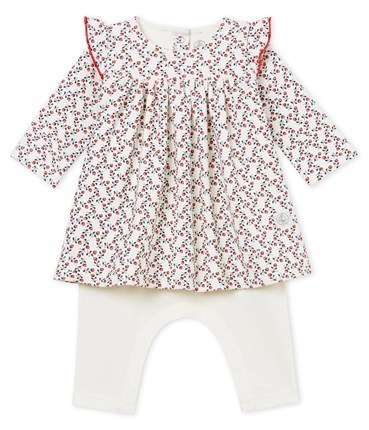 出典:www.petit-bateau.co.jpフランス発の人気ブランド、プチバトーからは、上品な花柄のワンピースとカルソンがつながったキュートなロンパースをご紹介します。