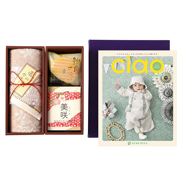 出典:www.takashimaya.co.jpカタログギフトと一緒に、フェイスタオル、和菓子を詰め合わせたセット商品で、価格は税込10,908円です。親戚や家族など、出産祝いをたくさんいただいた場合の内祝いにぴったりです。