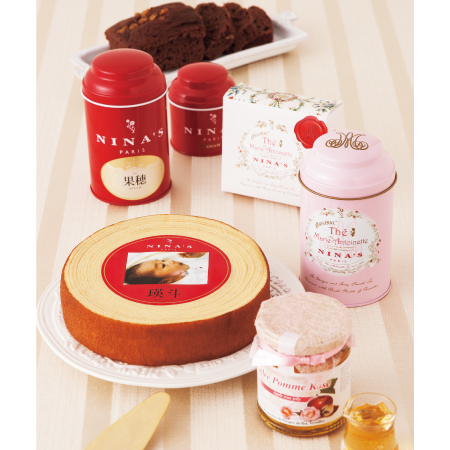 *商品内容:名入れオーナメントクッキー・ストロベリージャム27g・ブラックカラントジャム27g・ドラジェ70g各1・押し型クッキー×3・アップルティーバッグ・セイロンティーバッグ各10袋