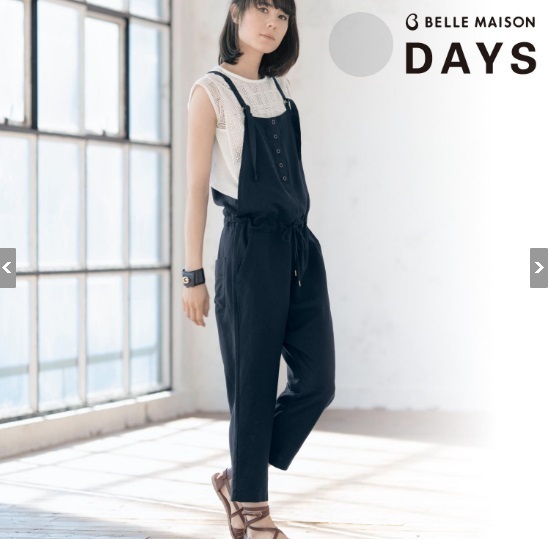 出典:www.bellemaison.jpベルメゾンには大人女子が着られそうなオールインワンがたくさん。半袖タイプだと重ね着をしなくていいので1枚ですとんと着られますね。