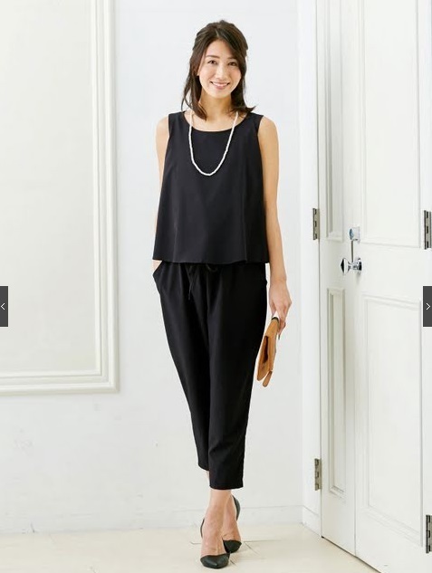 通勤から結婚式などのきちんとスタイルに対応できるので、1枚あると助かりそう。トップスもフレア素材になっていて、お腹まわりもきちんとカバーしてくれます。カラーはブラックとネイビーの2色、サイズは9号11号があります。