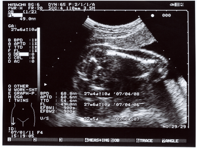 超音波をあてて赤ちゃんの様子を見る検査画像