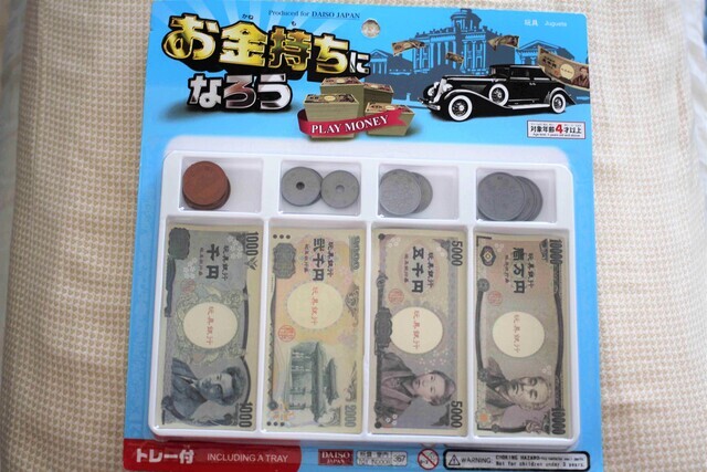 100均でもおもちゃのお金を取り扱っているお店がたくさんあります。本物に近いデザインから、かわいいイラスト付きまで揃っています。